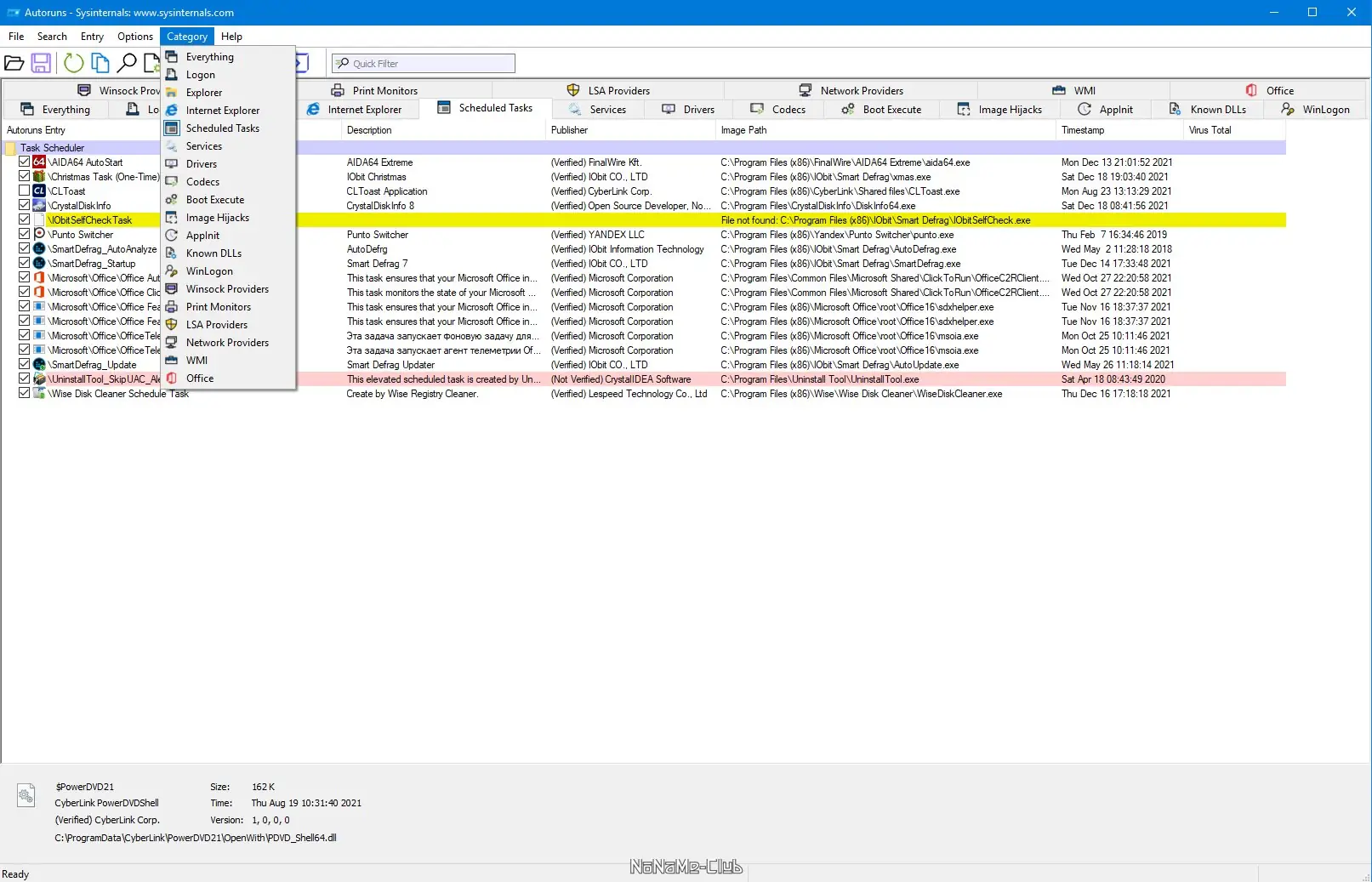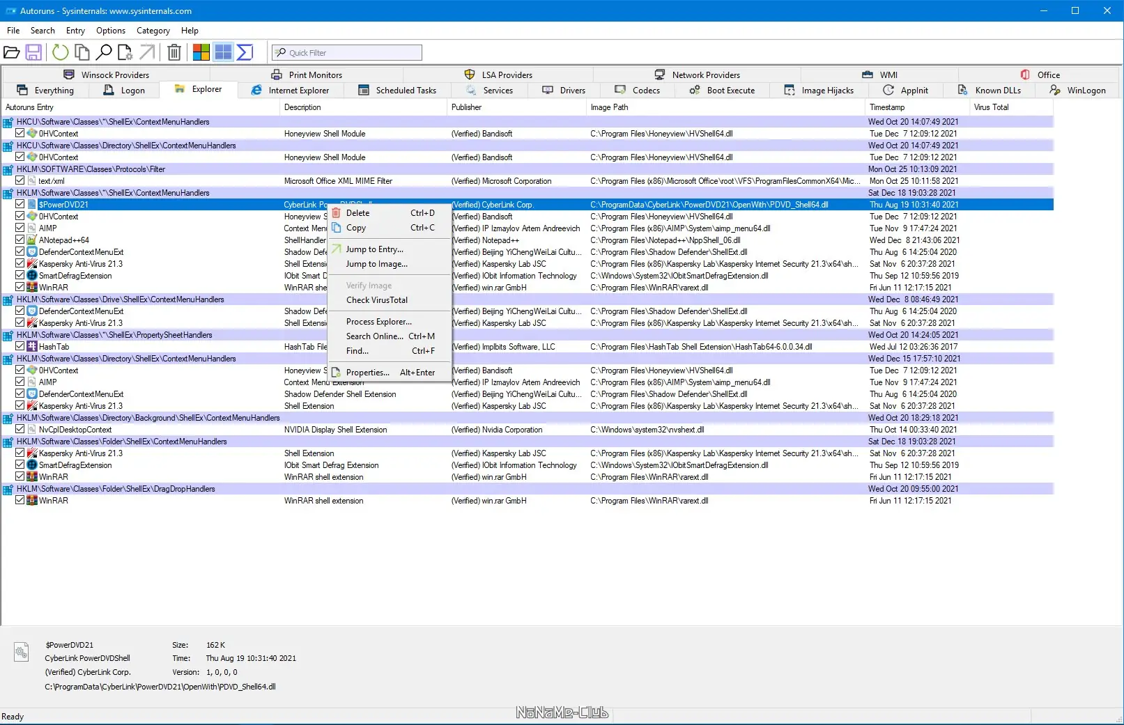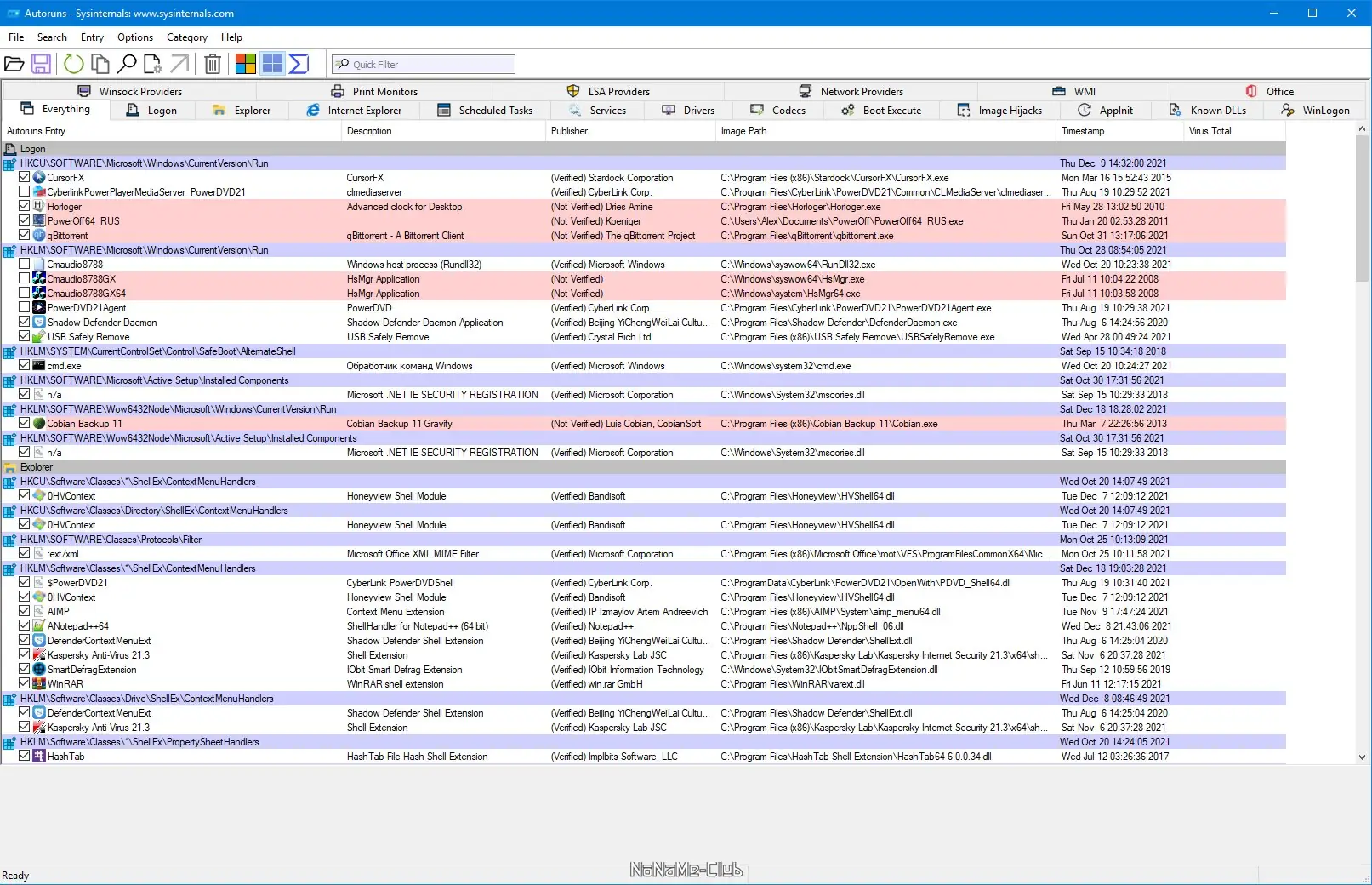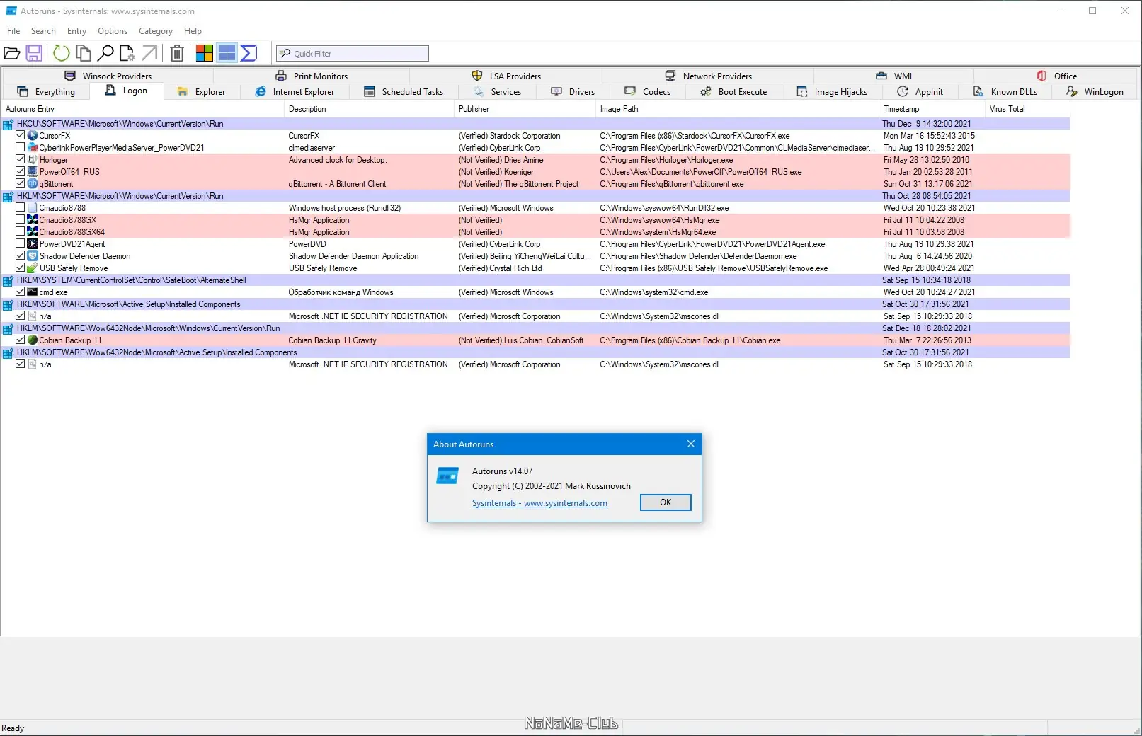AutoRuns — это бесплатная утилита для операционных систем Windows, разработанная компанией Sysinternals и приобретённая Microsoft, предназначенная для контроля автозагрузки программ и компонентов системы. Она отображает все элементы, которые запускаются при старте системы или входе пользователя, включая программы, службы, драйверы, модули и другие объекты, расположенные в различных разделах реестра, папках автозагрузки и специальных конфигурациях Windows. Благодаря расширенному функционалу, эта программа превосходит стандартные инструменты Windows, такие как MSConfig, открывая полный обзор процессов автозапуска и позволяя управлять ими.