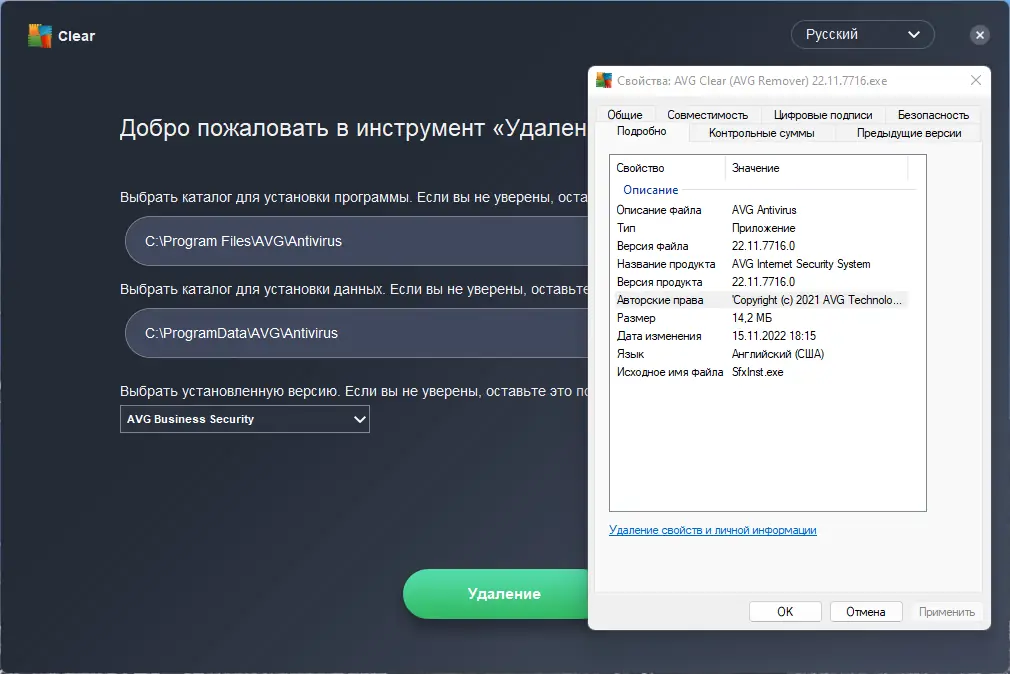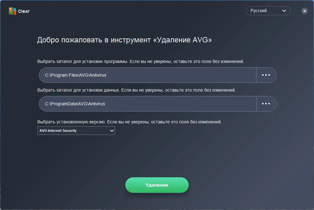 - Полностью удаляет все версии AVG Antivirus и Internet Security