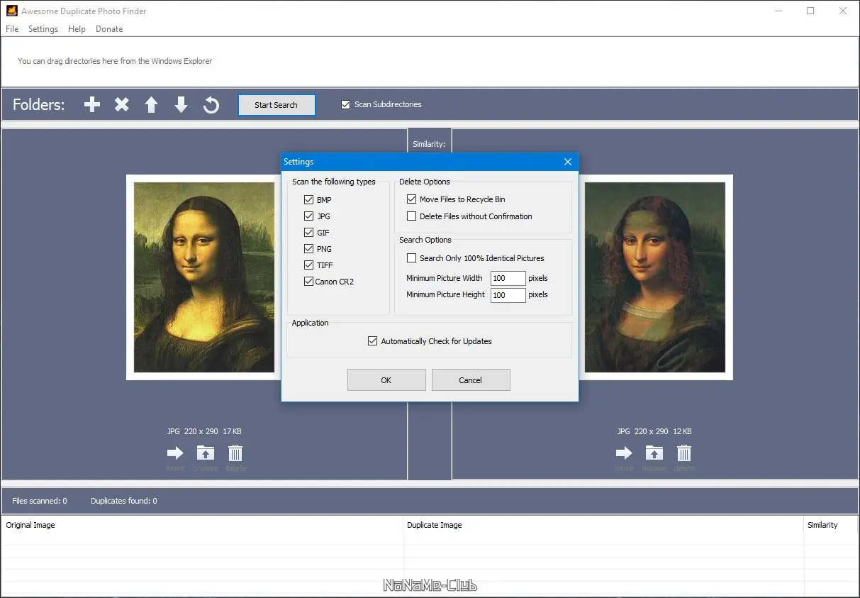 - Гибкая настройка параметров поиска с возможностью исключения определенных форматов изображений;