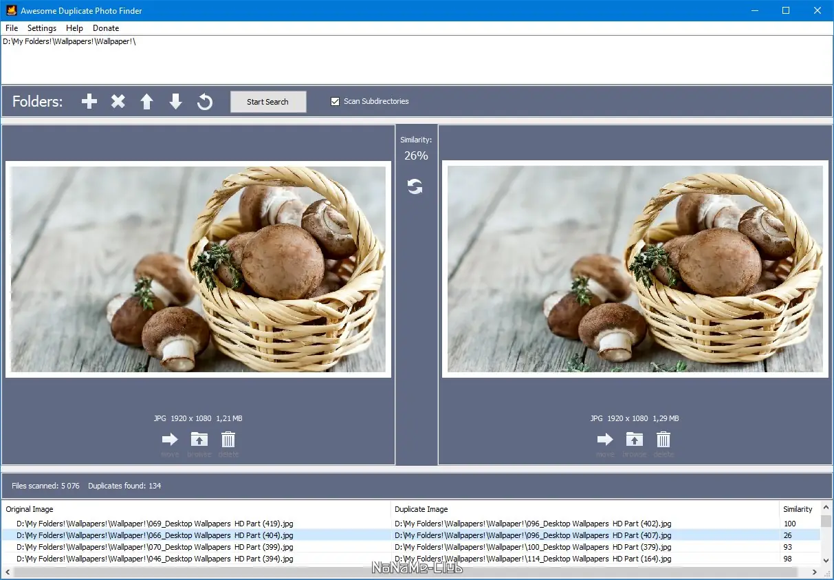 Данный софтверный продукт предназначен для быстрого и удобного поиска дубликатов изображений, поддерживая различные графические форматы, такие как JPG, BMP, GIF, PNG, TIFF, а также RAW-файлы типа CR2 (Canon RAW). Интуитивно понятный интерфейс с предсказуемой навигацией и всплывающими подсказками делает использование программы максимально простым даже для неопытных пользователей. В процессе сканирования выполняется сравнение изображений по цвету, положению и визуальным переходам, а совпадения отображаются в процентах, что позволяет принимать обоснованные решения о удалении лишних файлов.