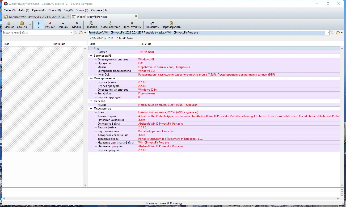 - Настраиваемые режимы сравнения: текст, HEX, изображения, аудио и видеофайлы