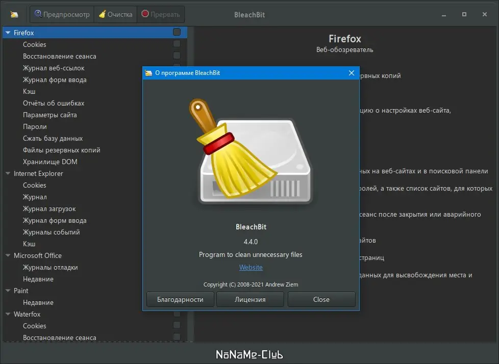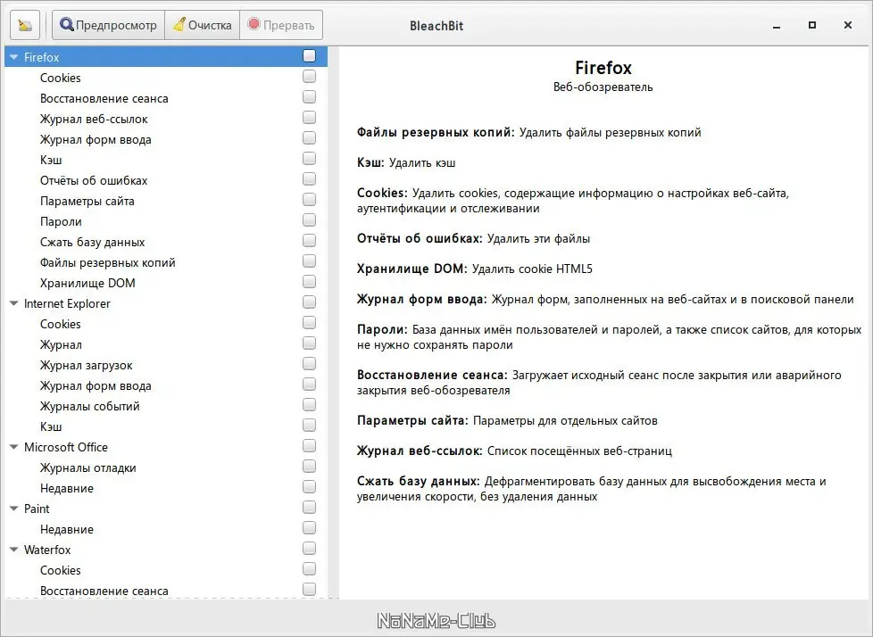 Diese программа предназначена для тщательной очистки системы, удаления мусора, временных файлов, истории браузеров и данных приложений, а также для полностью безвозвратного удаления файлов и очистки свободного места. После быстрой установки интерфейс становится понятным и организованным, что позволяет легко управлять процессами очистки. BleachBit особенно ценится за возможность предварительного просмотра результатов очистки, что помогает избежать нежелательного удаления важных данных. В дополнение к стандартным возможностям программа позволяет стирать файлы с диска многократно, создавая надежную защиту конфиденциальности и предотвращая восстановление информации специализированными программами.