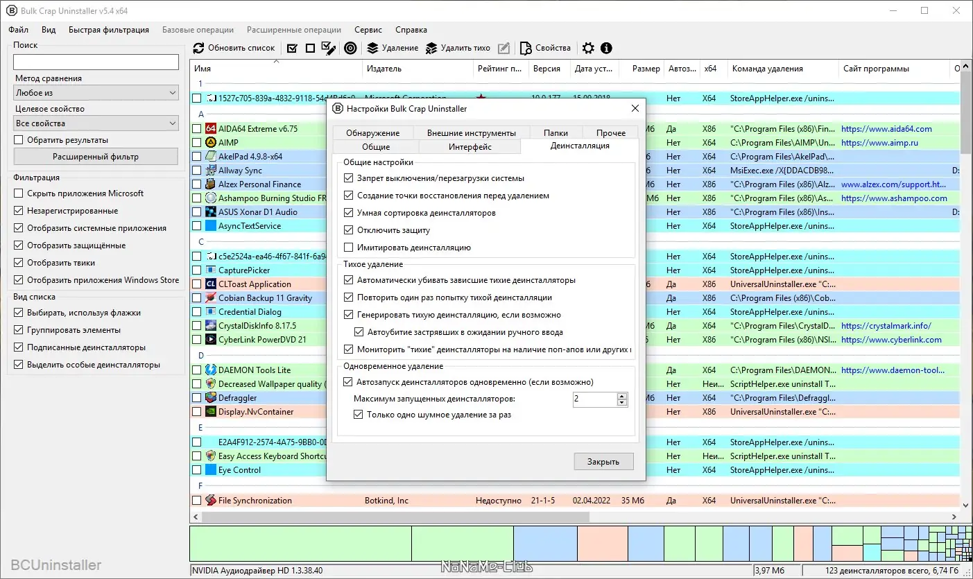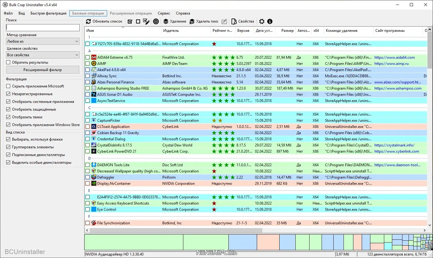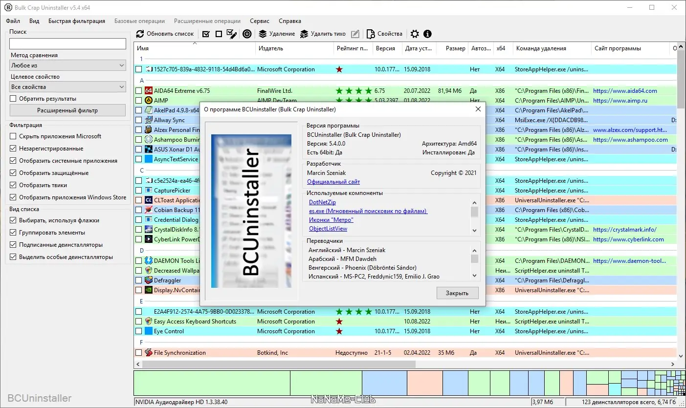 Bulk Crap Uninstaller — это удобное и многофункциональное деинсталляторское решение для Windows, позволяющее полностью удалить любые программы без остатков. Этот инструмент избавит вас от необходимости вручную очищать систему от остатков удаленных приложений, таких как записи в реестре, ненужные файлы и папки. Простота интерфейса и продвинутый функционал делают его подходящим как для новичков, так и для опытных пользователей, стремящихся к аккуратной и быстрой оптимизации системы.
