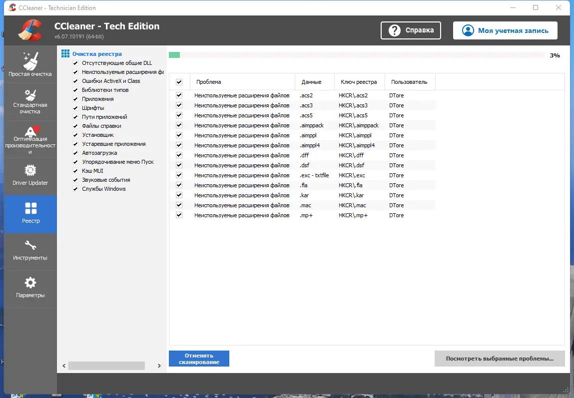 - Оптимизация и очистка реестра Windows: удаление неиспользуемых расширений, устаревших библиотек DLL, неверных ярлыков и элементов управления ActiveX.