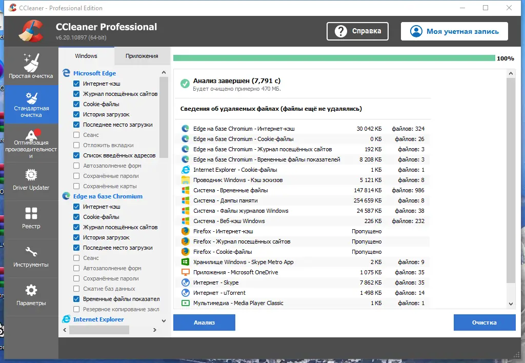 CCleaner — это универсальный инструмент для очистки мусора в операционной системе и программа для повышения скорости работы компьютера. В ходе своей деятельности он ищет и удаляет временные и неиспользуемые файлы, такие как cookies, история посещений сайтов, файлы корзины и временные файлы различных приложений. Поддерживается удаление данных сторонних программ, таких как браузеры, медиаплееры, офисные редакторы и архиваторы. Кроме того, встроенный чистильщик реестра позволяет выявлять и устранять неактуальные и поврежденные записи, что способствует стабильности системы и увеличению её скорости. Политика безопасной очистки делает использование программы полностью безопасным для данных пользователя, а возможность полного стирания файлов с перезаписью повышает уровень конфиденциальности.