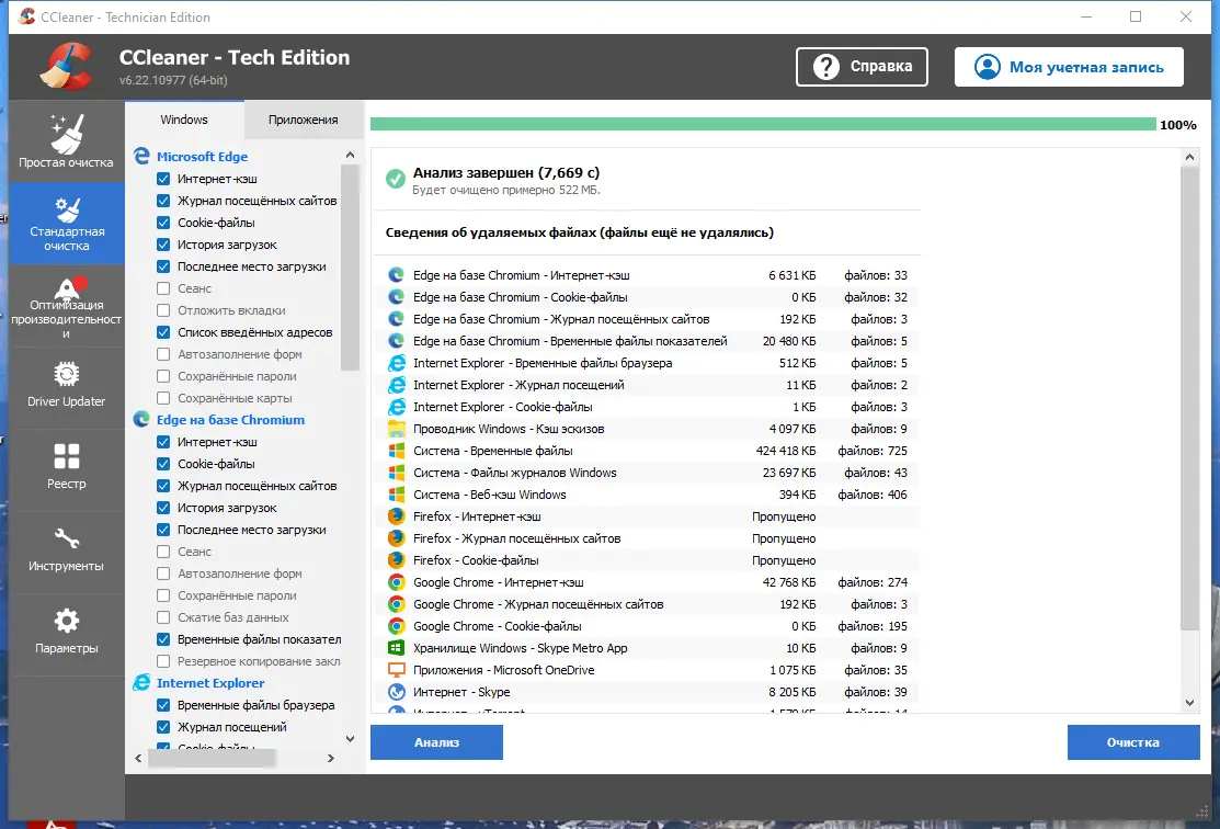 CCleaner — это мощная и простая в использовании программа, предназначенная для освобождения дискового пространства и повышения производительности операционной системы Windows 7, 8/8.1, 10, 11 на русском и других языках. Она ищет и удаляет временные, неиспользуемые файлы, следы интернет-серфинга, а также очищает реестр Windows, избавляя его от устаревших и ненужных записей. Помимо этого, CCleaner поддерживает очистку данных множества сторонних программ, таких как Firefox, Opera, Media Player, eMule, Kazaa, Office XP, Nero, Adobe Acrobat, WinRAR и многих других. В процессе работы программа использует несколько уровней проверки безопасности, что исключает случайное удаление важных данных и делает её безопасной для системы.