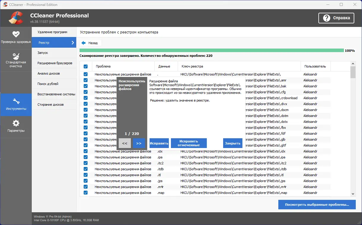 - Очистка системных и сторонних файлов, а также реестра Windows для освобождения дискового пространства и ускорения работы.