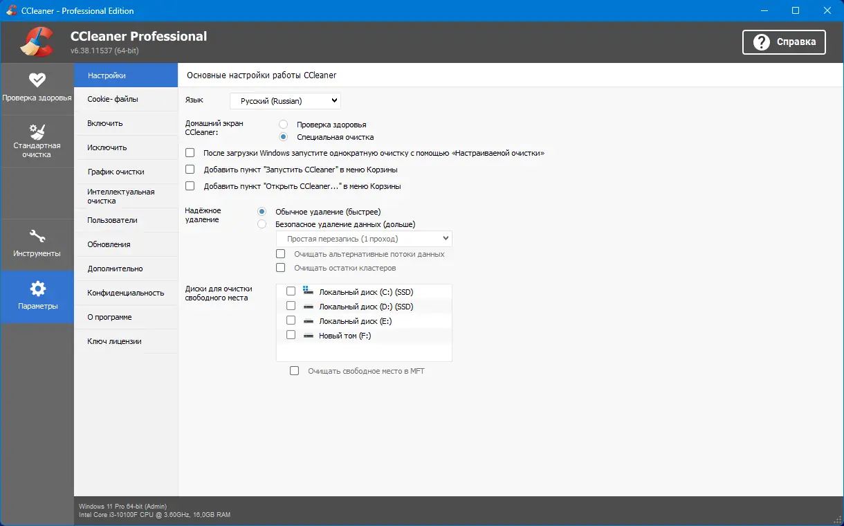 - Эффективная очистка мусора и временных файлов, освобождение дискового пространства.