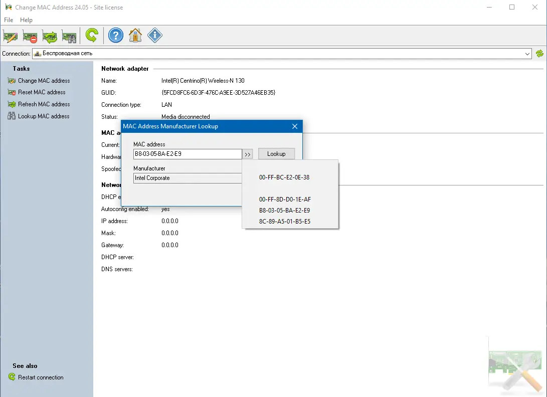 - Простое и быстрое изменение MAC-адреса в несколько кликов.