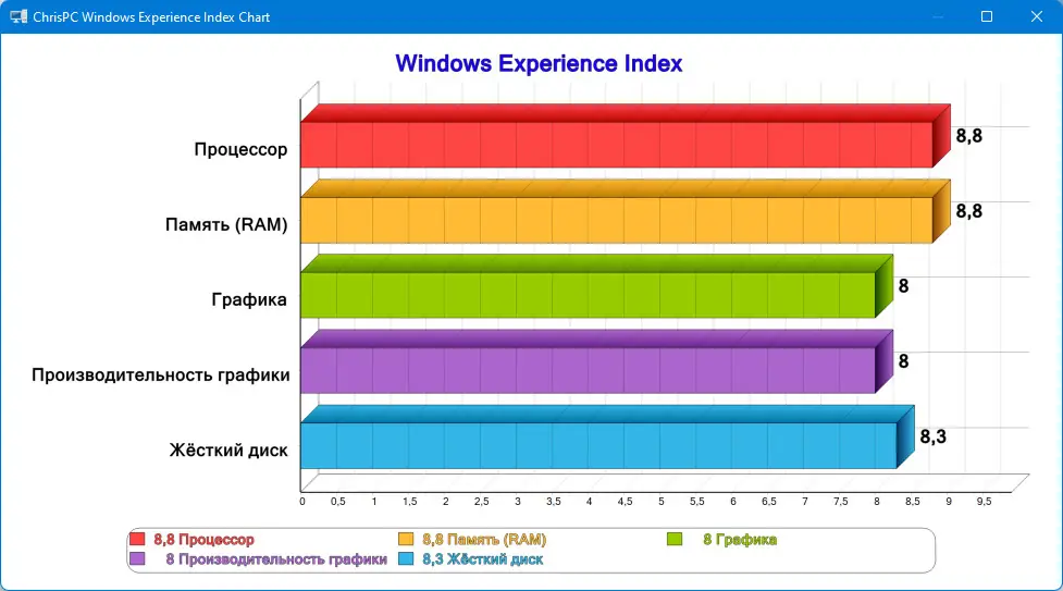 ChrisPC Win Experience Index — бесплатная утилита, позволяющая самостоятельно измерить системный индекс производительности в Windows, расширяя возможности стандартных инструментов системы. Это удобное решение для оценки работы компонентов ПК и получения полной картины его быстродействия.