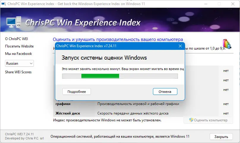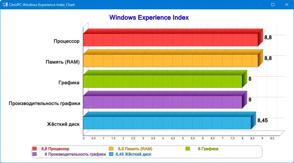 ChrisPC Win Experience Index — бесплатная утилита для самостоятельного измерения системного индекса производительности в Windows, которая значительно расширяет стандартные возможности оценки.
