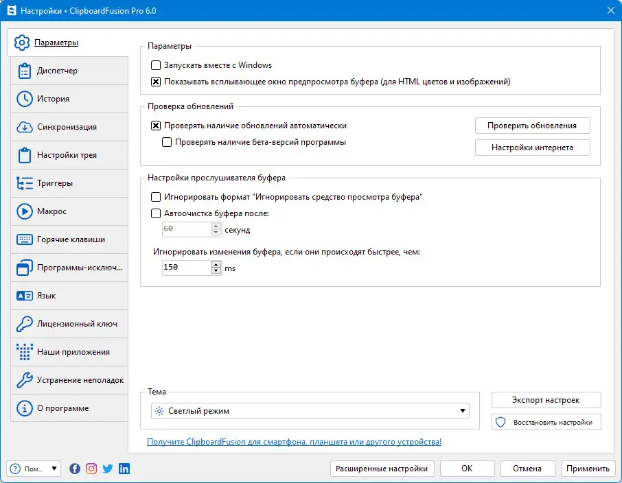 Clipboard Fusion — это утилита для эффективной настройки и работы с буфером обмена, позволяющая хранить неограниченное количество скопированных фрагментов текста, ссылок и данных, а также быстро управлять ими.