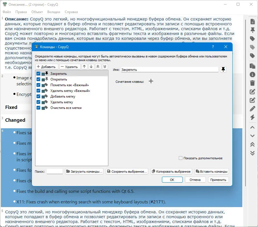 Бесплатный менеджер буфера обмена, предназначенный для Windows и Linux. Позволяет сохранять историю данных, совместимых с различными форматами, и управлять ими с помощью интуитивного интерфейса. Благодаря встроенным функциям редактирования и расширенным возможностям автоматизации, эта программа значительно облегчает работу с часто используемыми текстами, изображениями и файлами.