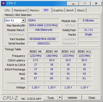 - Отображает информацию об объеме и текущем режиме работы ОЗУ, содержимом SPD-блоков модулей памяти, а также предоставляет базовые сведения о материнской плате и отдельный бенчмарк латентности памяти.