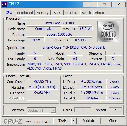 - Точно определяет основные характеристики процессора: наименование, тип ядра и степпинг, используемый разъем, поддержку мультимедийных инструкций, объем и параметры кеш-памяти.