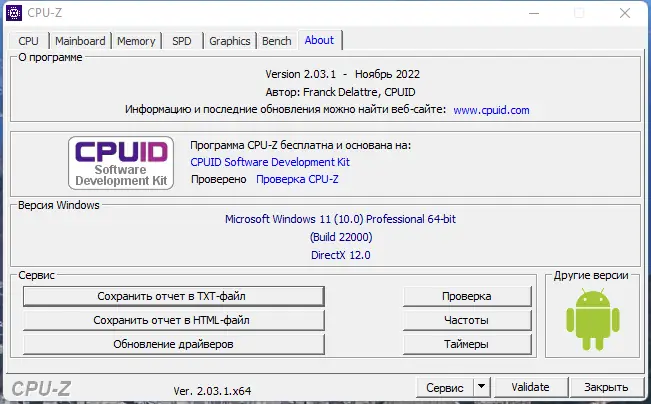 CPU-Z — это бесплатная утилита, предназначенная для получения подробной информации о вашем процессоре и системе. Она позволяет быстро и удобно определить основные характеристики процессора, такие как название, производителя, тактовая частота, техпроцесс изготовления, объем и параметры кеш-памяти, а также сведения о поддерживаемых инструкциях и режимах работы. Благодаря portátil-версии, программа не требует установки и может работать в любой системе Windows 7, 8/8.1, 10 или 11 в 32-х и 64-битных версиях. Этот инструмент особенно полезен для специалистов и энтузиастов, желающих точно знать внутренние параметры своих комплектующих без необходимости снимать крышку корпуса или разбирать устройство.