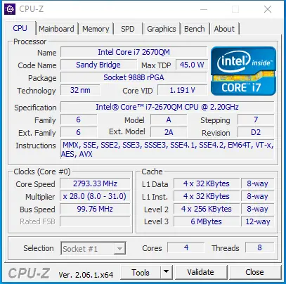 - Точное определение характеристик процессора: название, тип и степпинг, разъем, поддерживаемые инструкции и параметры кеш-памяти.