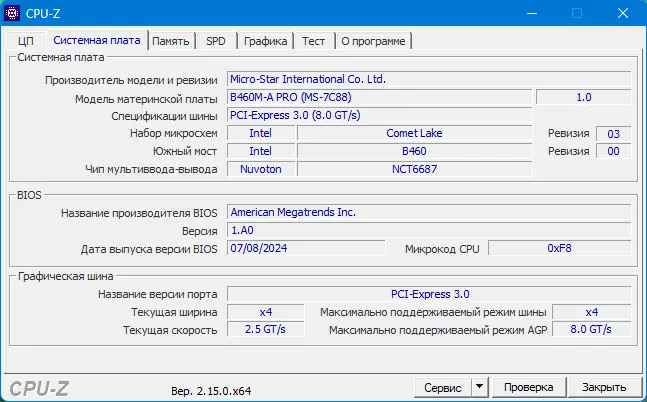 - Дает информацию об объеме и режимах работы ОЗУ, содержимом SPD-блоков модулей памяти, а также включает базовые сведения о материнской плате.