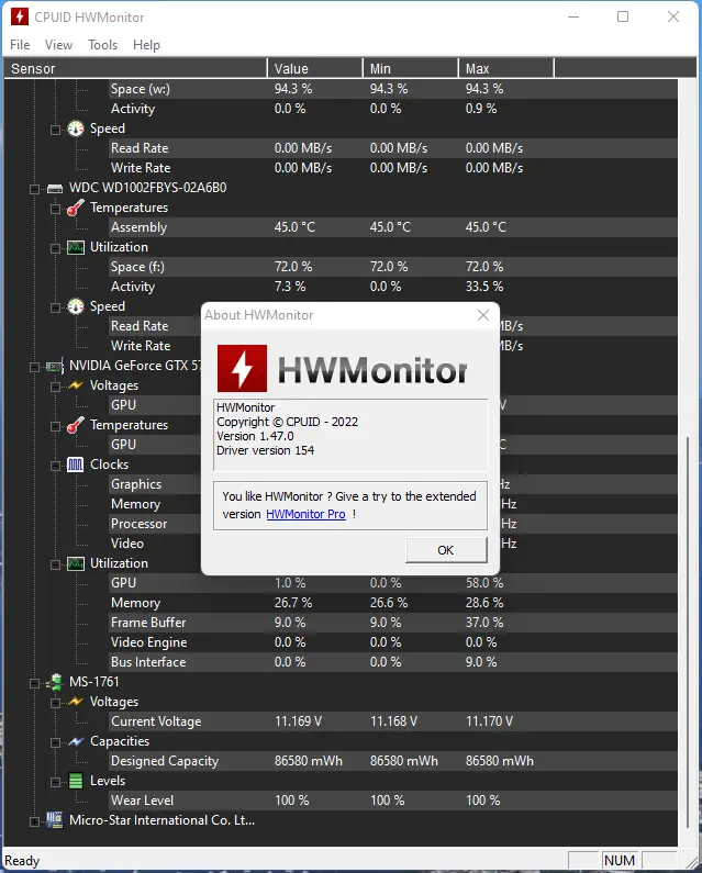 CPUID HWMonitor позволяет отслеживать показатели различных компонентов ПК в режиме реального времени. В её возможности входит мониторинг процессорных датчиков, сенсоров блоков питания, накопителей и видеокарт на базе GPU производства ATI и nVIDIA. Программа приятна в использовании и совместима с операционными системами Windows 7, 8/8.1, 10 и 11 как в 32, так и в 64-битных версиях. Скачать её можно бесплатно, а также в виде pro-версии для расширенных возможностей. Утилита подойдет как для домашних пользователей, так и для профессиональных системных администраторов и энтузиастов.