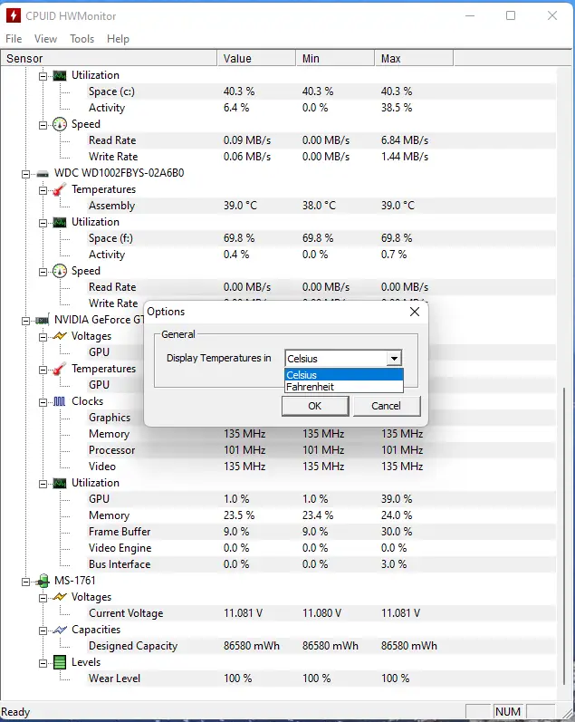 - Отслеживание показателей сенсоров блоков питания, видеокарт и накопителей.