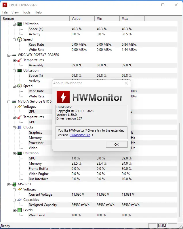 CPUID HWMonitor представляет собой комплексное решение для контроля состояния ПК в реальном времени. Эта программа поддерживает мониторинг процессорных датчиков, множества различных чипов мониторинга, а также сенсоров блоков питания Gigabyte ODIN, накопителей с S.M.A.R.T., видеокарт на базе GPU производства ATI и nVIDIA. Благодаря простому интерфейсу и высокой точности измерений, программа помогает своевременно выявлять потенциальные проблемы и предотвращать их развитие.