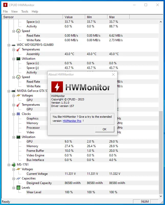 CPUID HWMonitor — это мощная утилита для мониторинга состояния компонентов компьютера, позволяющая отслеживать температуру, скорость вращения вентиляторов и напряжение в реальном времени. Поддерживаются датчики процессоров, различных чипов мониторинга, а также сенсоры блоков питания и температуры накопителей.