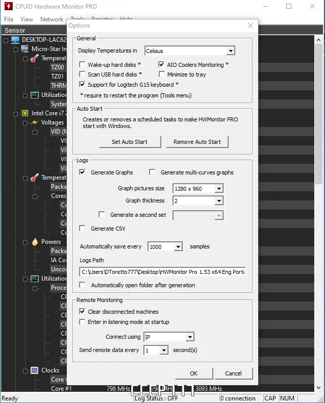 - Настроить параметры отображения и выбрать необходимые датчики для мониторинга.