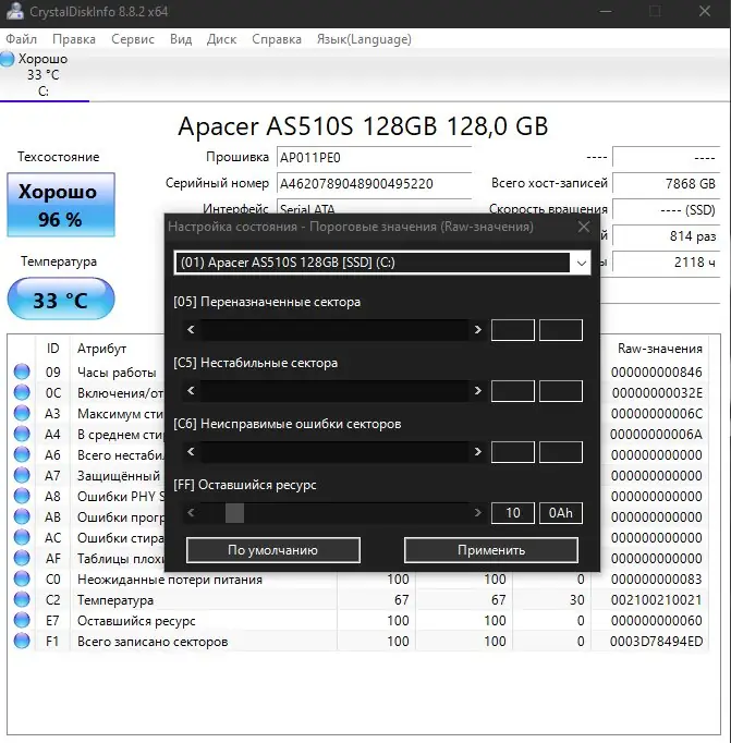 - Настройте необходимые параметры и приступайте к мониторингу дисков.