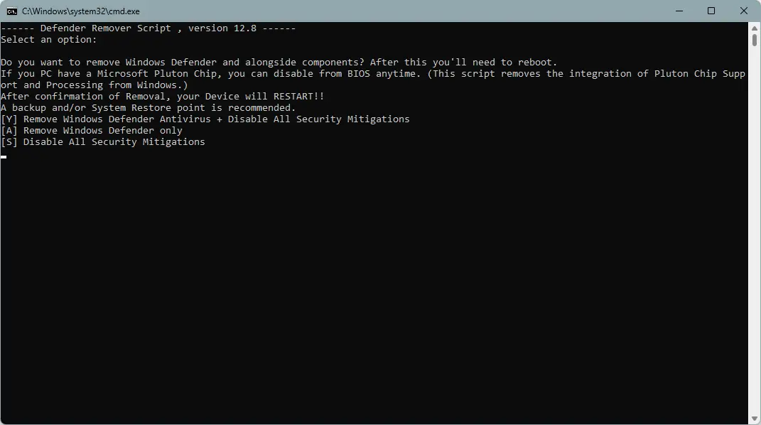 - Запустить файл Defender Remover, выбрав нужную команду через интерфейс.