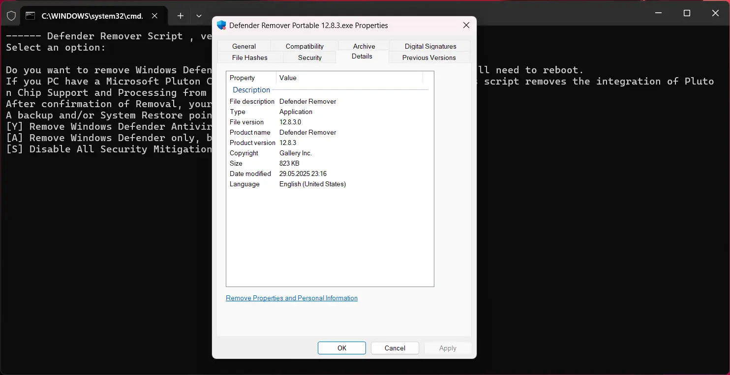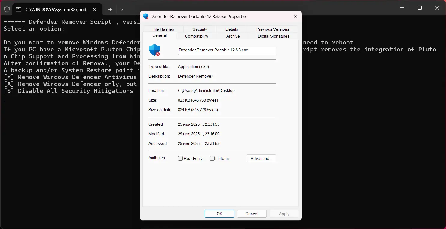 Defender Remover — бесплатная portable утилита, предназначенная для быстрого и удобного отключения Защитника Windows и связанных с ним служб. Она подходит для пользователей, которым необходимо полностью отключить встроенную защиту на системах Windows 7, 8/8.1, 10 и 11 (x32 и x64 Bit). Программа позволяет удалить компоненты безопасности, такие как приложение «Безопасность Windows», Microsoft Defender App Guard, Windows SmartScreen, службы веб-угроз и виртуализацию файлов UAC, а также отключить защиту на уровне виртуализации Виндовс и антивирусные модули. Утилита не требует инсталляции — достаточно запустить её от имени администратора и выбрать нужный режим работы.