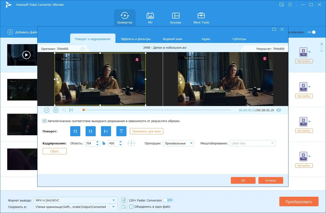 • Редактирование видео: обрезка, объединение, добавление водяных знаков, съемка скриншотов