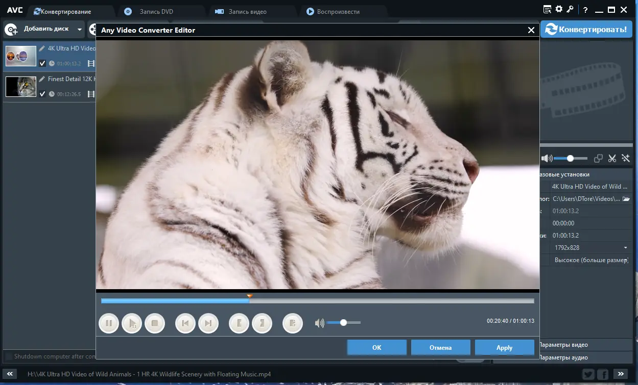 Any Video Converter ultimate — это многофункциональное и простое в использовании приложение, предназначенное для быстрого и качественного конвертирования видеофайлов в различные форматы, включая MP4, AVI, MOV, WMV, FLV, MKV и многие другие. Программа поддерживает конвертацию более чем в 200 форматов, обеспечивая высокое качество конечного видео и ускоренное преобразование с помощью поддержки технологий NVIDIA NVENC и H.265 (HEVC). Помимо этого, она позволяет редактировать видео, добавлять субтитры, объединять клипы, делать эффекты и захватывать видео с экрана в реальном времени. Также есть возможность записи видео на диски, а также загрузки и конвертации видео с популярных онлайн-сервисов, таких как YouTube, для дальнейшего использования на мобильных устройствах. Ориентирована на пользователей всех уровней, включая тех, кто хочет бесплатно скачать программу на русском языке и использовать ее на системе Windows 7, 8/8.1, 10 или 11 в 32 или 64 битах.