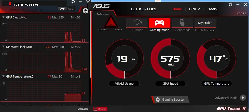 Данное программное обеспечение предназначено для пользователей видеокарт ASUS, которые хотят легко управлять настройками, повышать производительность и следить за состоянием своей видеокарты. ASUS GPU Tweak II предоставляет удобный интерфейс с возможностью переключения между режимами высокой производительности, авто-разгона и тихой работы. В приложении предусмотрены три предустановленных профиля, а также возможность создавать пользовательские конфигурации, что позволяет подобрать оптимальные параметры под конкретные задачи. Уникальной особенностью является режим Gaming Booster, который отключает ненужные визуальные эффекты Windows и службы, очищая системную память для максимальной отдачи во время игр. Для опытных пользователей доступны режимы простого и расширенного управления, что обеспечивает гибкость настройки видеокарты.