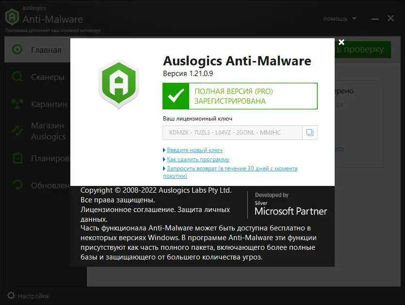 Auslogics Anti-Malware — это эффективный инструмент дополнительной защиты вашего компьютера, который помогает обнаружить и устранить вредоносные программы там, где основной антивирус может их пропустить. Совместим с Windows 7, 8/8.1, 10 и 11, а также поддерживает архитектуру x32 и x64 Bit. Можно скачать бесплатно или через торрент, чтобы обеспечить безопасную и надежную работу системы.