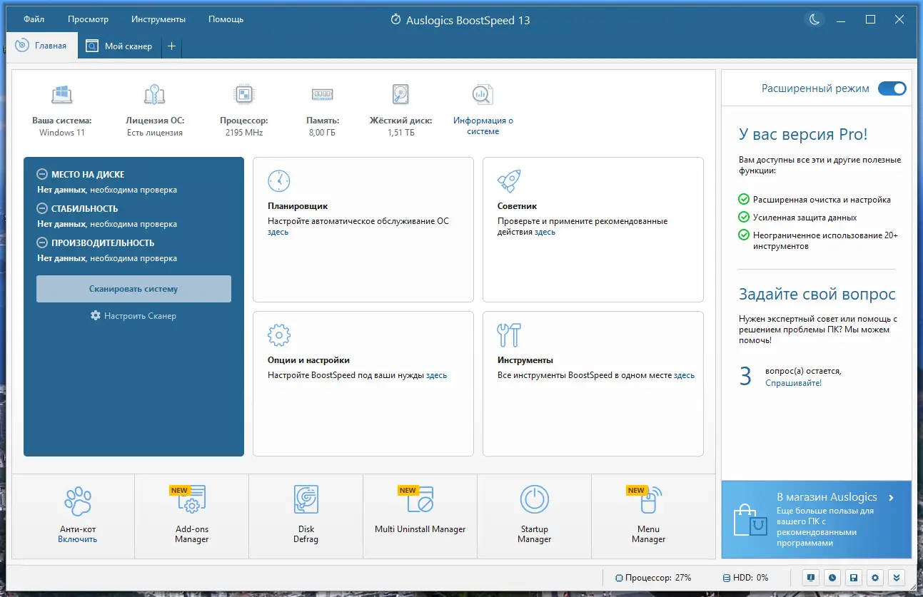 - Диагностика системы Windows и устранение проблем, снижающих скорость работы.