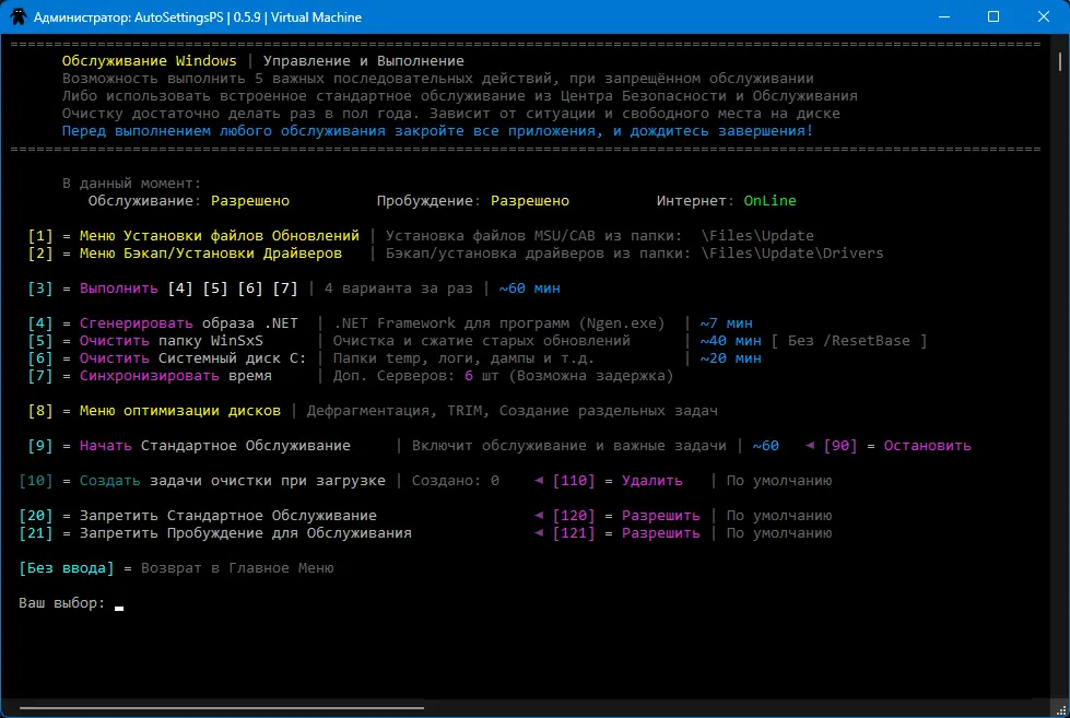 AutoSettingsPS — это портативный инструмент, основанный на наборе скриптов PowerShell для автоматической настройки основных параметров Windows, выполнения обновлений и обслуживания системы. Программа позволяет сконфигурировать сценарий под себя, обладает открытым исходным кодом и отображает все свои действия с подробным описанием. Основная задача — освободить ресурсы Windows от лишних постоянных действий, отключить сбор данных и современные функции, оставляя только стандартный функционал, необходимый для игр и работы. Написана на PowerShell 5, работает из папки, не требует установки и не нуждается в знании PowerShell.