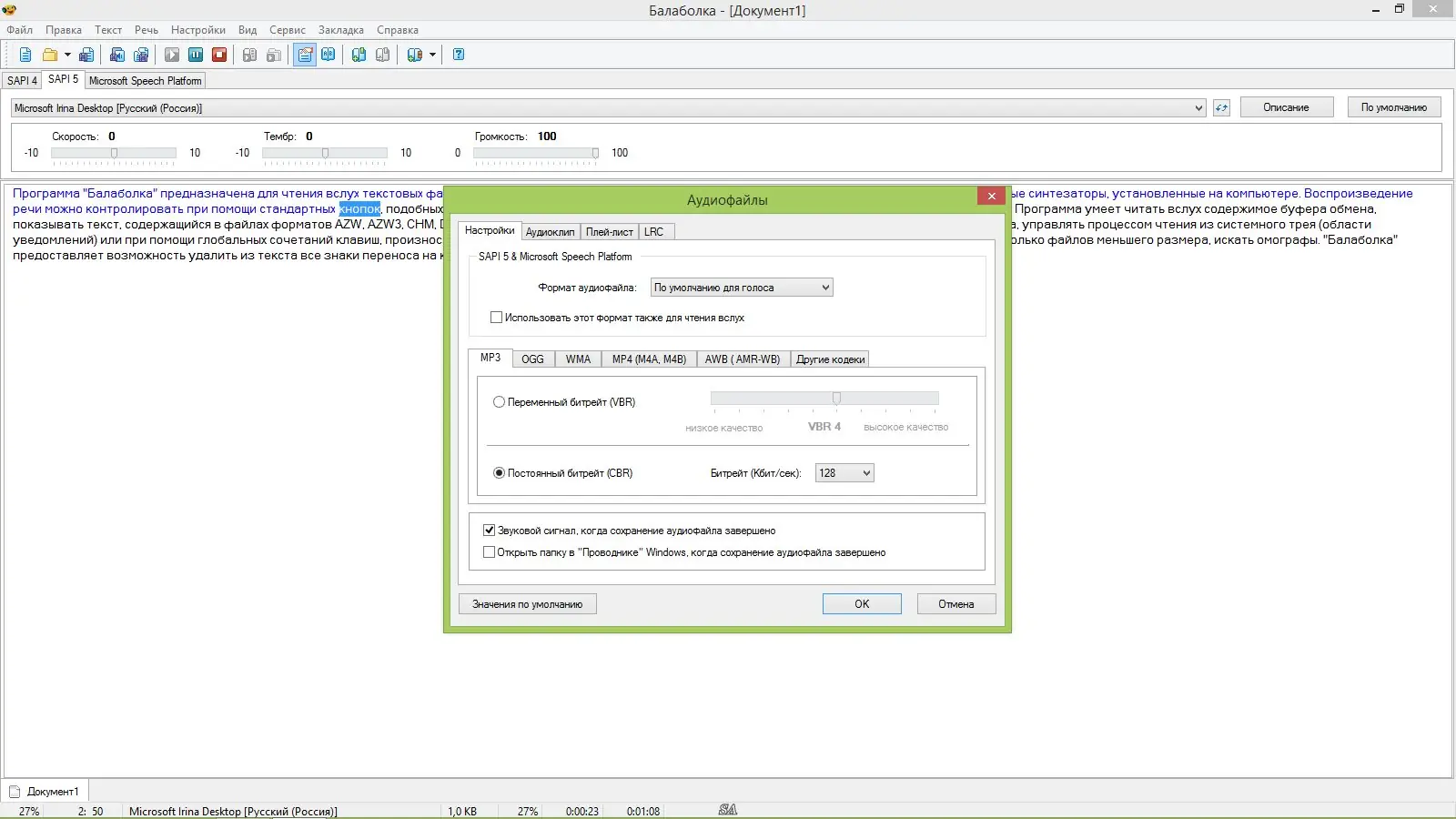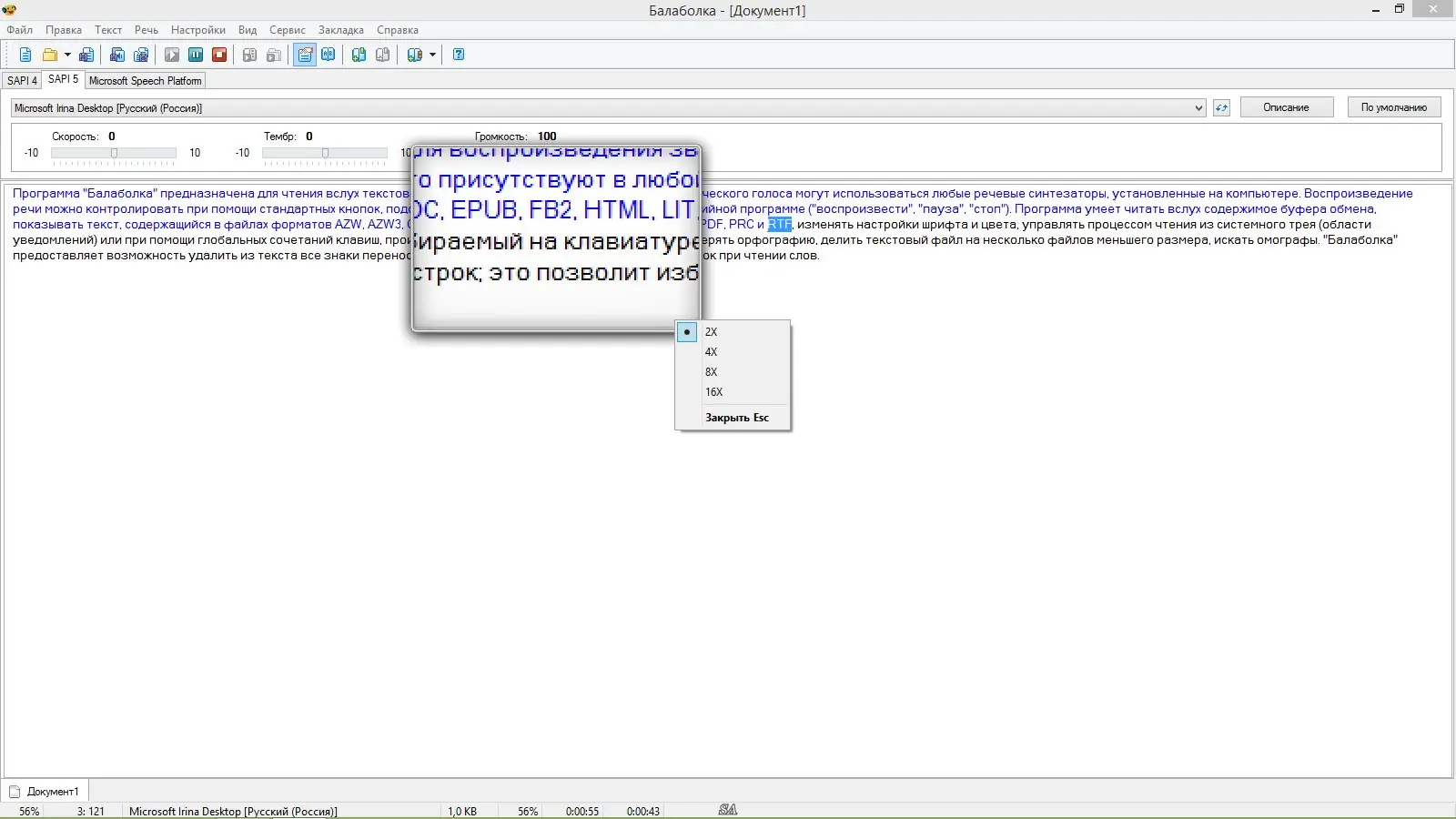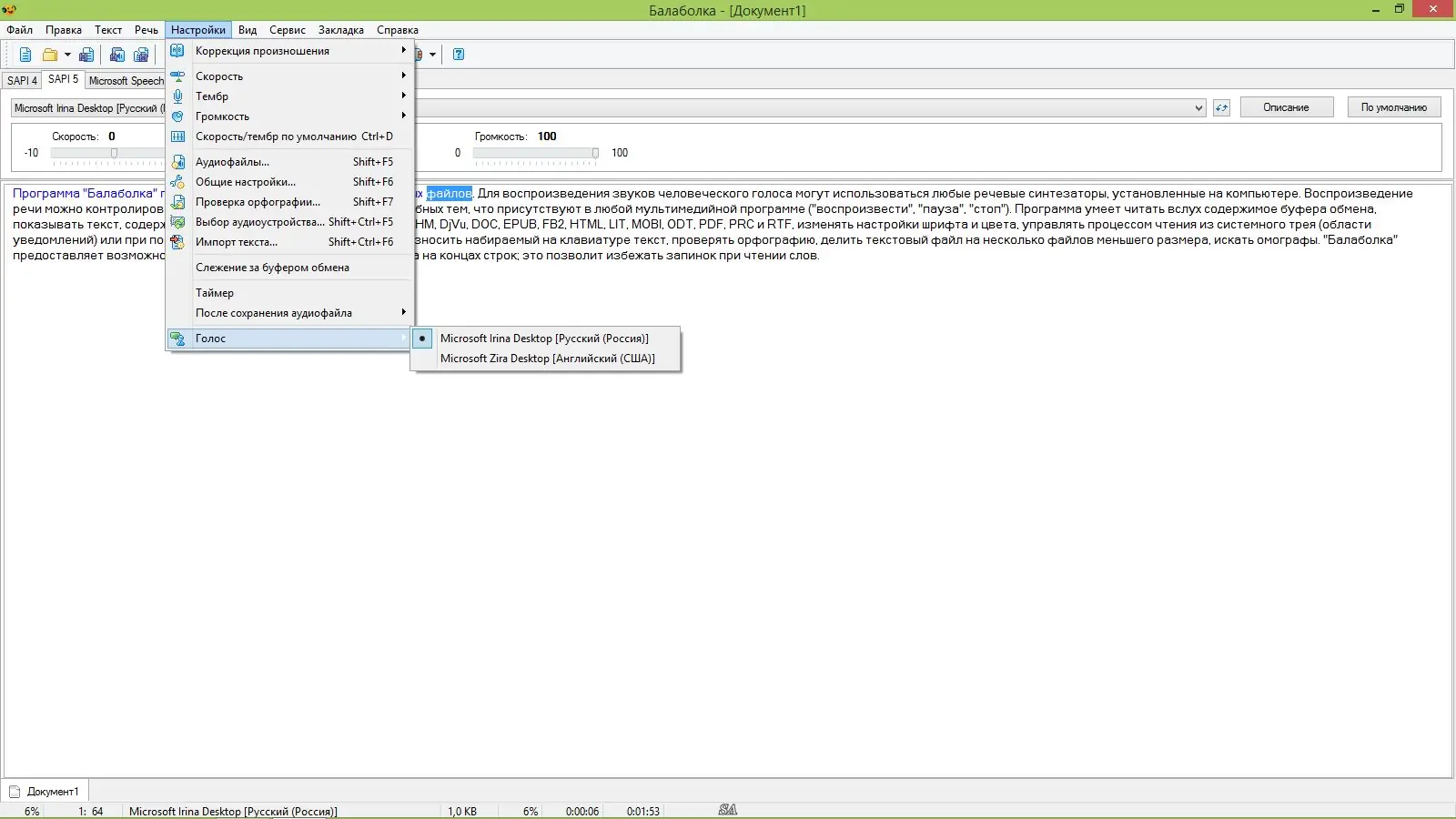 Бесплатная программа для озвучки и чтения текстовых файлов с возможностью сохранения аудио.