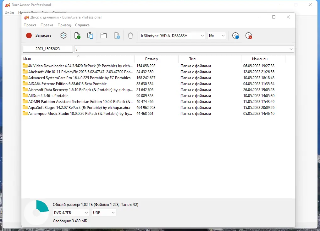 BurnAware — это простая и одновременно мощная программа для записи и копирования любых дисков — CD, DVD, Blu-Ray и HD-DVD, а также для создания и копирования образов. Она обеспечивает полный контроль над процессом записи, обладает удобным интерфейсом и поддерживает мультисессию, что позволяет работать с различными типами носителей и файлами в различных форматах.