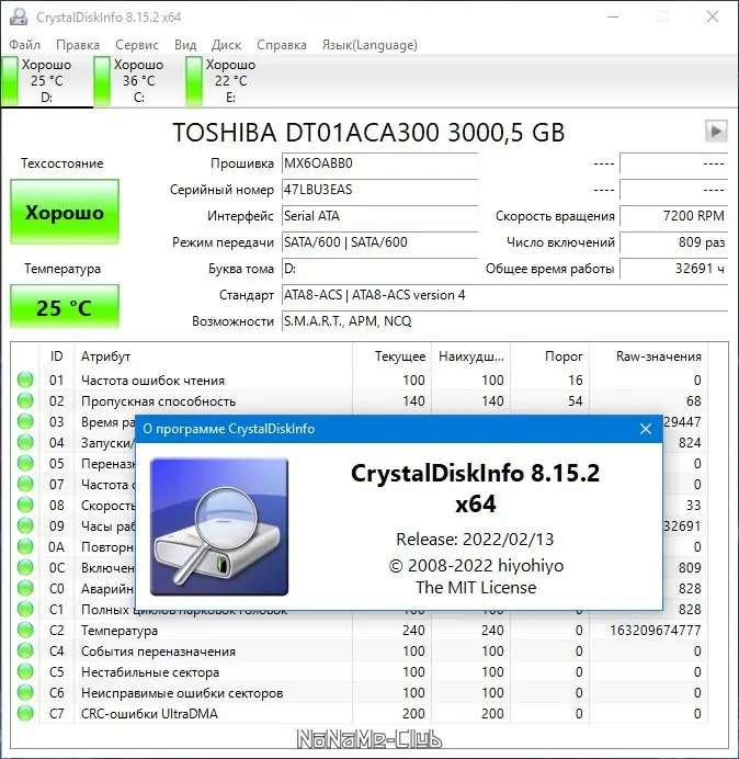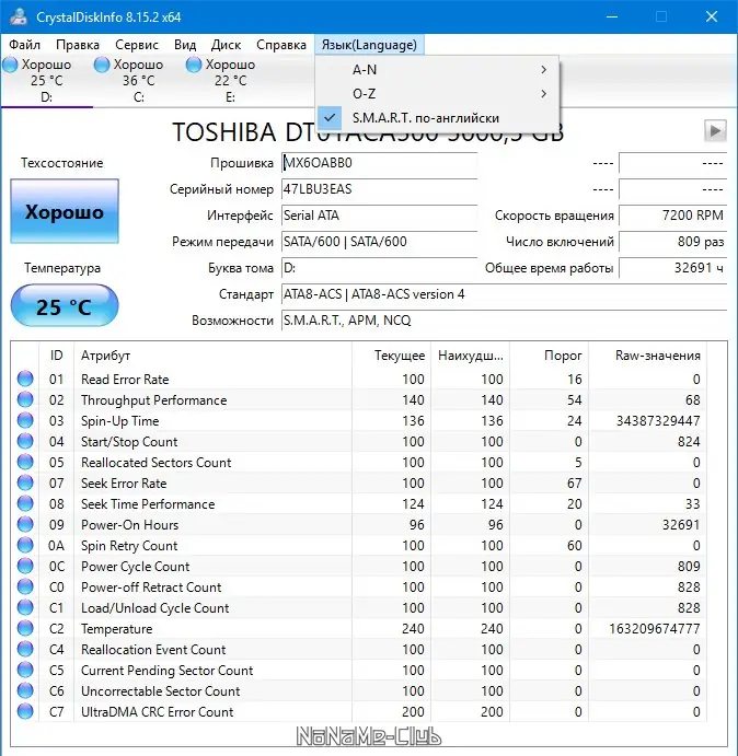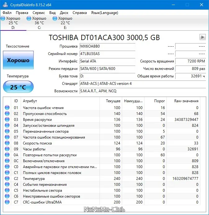 CrystalDiskInfo — это мощное решение для отслеживания состояния жестких дисков и SSD, которое поддерживает технологию S.M.A.R.T. и работает с различными интерфейсами, включая USB и IEEE 1394. Программа позволяет получать детальную информацию о прошивке, серийном номере, времени работы и других характеристиках накопителей в системе.