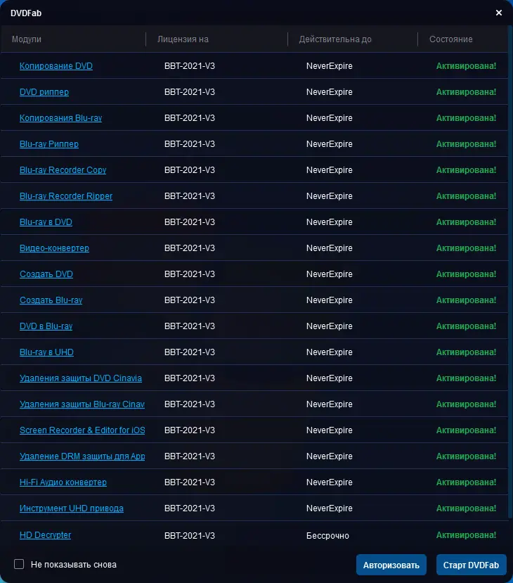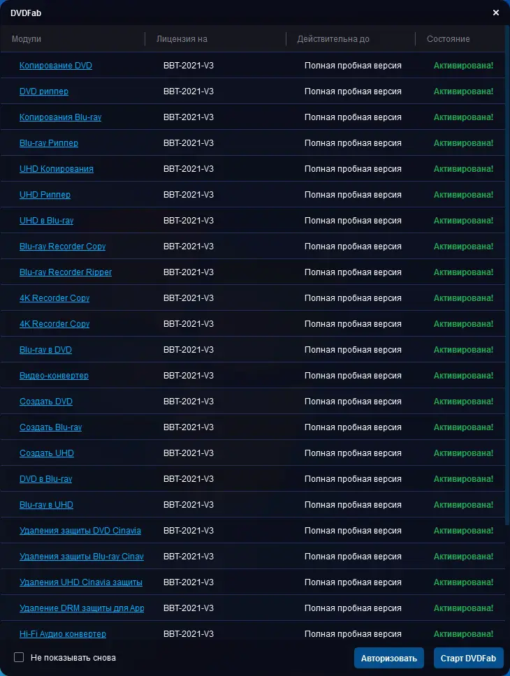 DVDFab работает в среде Windows 7, 8/8.1, 10 и 11, поддерживая системы x32 и x64 Bit. Благодаря возможностям конвертации и расширенному управлению контентом, пользователь может создавать резервные копии, подгонять видео под свои нужды и переносить любимые фильмы на мобильные устройства или игровые приставки.