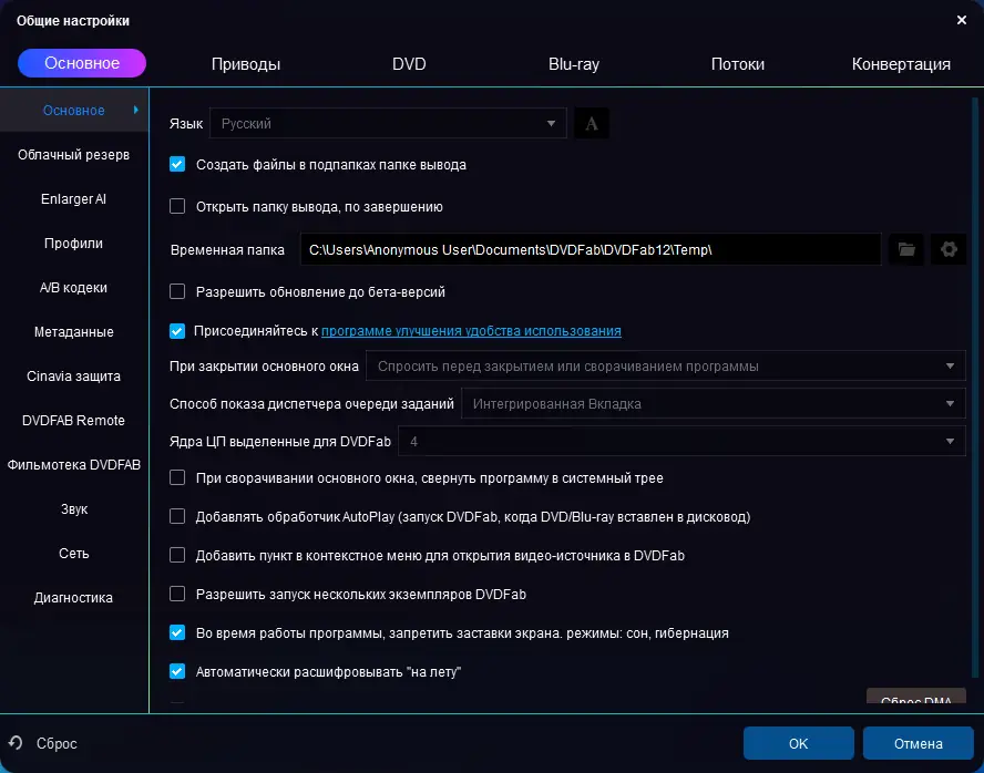 Обратите внимание, что изменение путей к временной и выходной папкам на диске без русских букв помогает избежать ошибок при работе на русскоязычных версиях Windows.