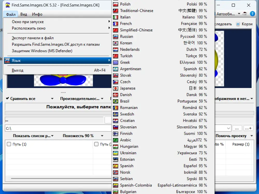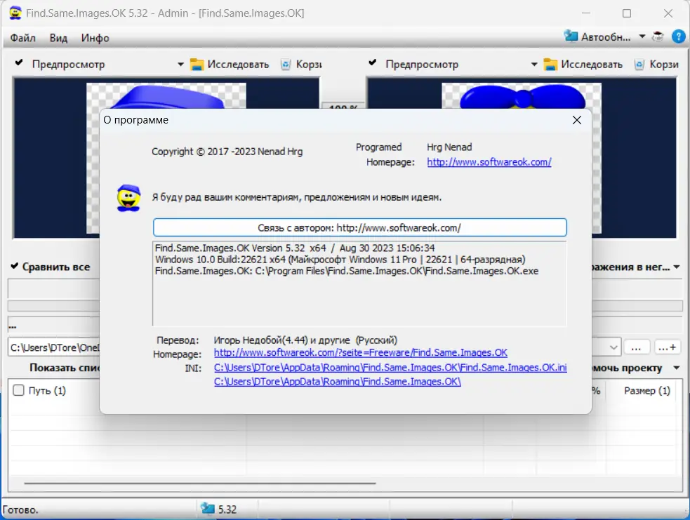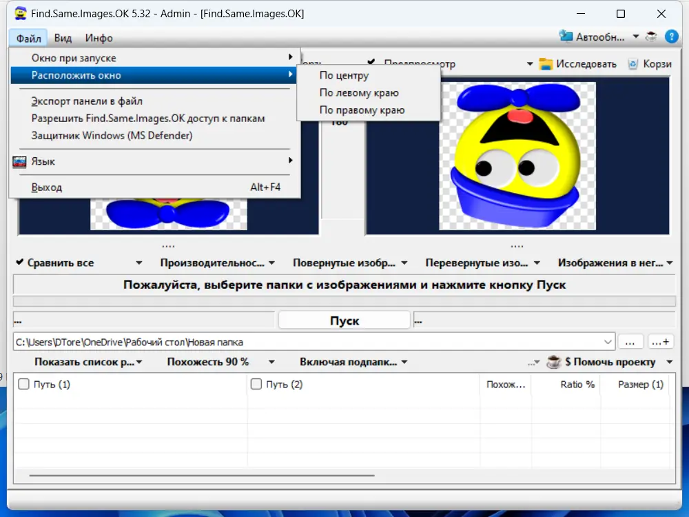 - Сравнение изображений и папок для поиска одинаковых и похожих файлов