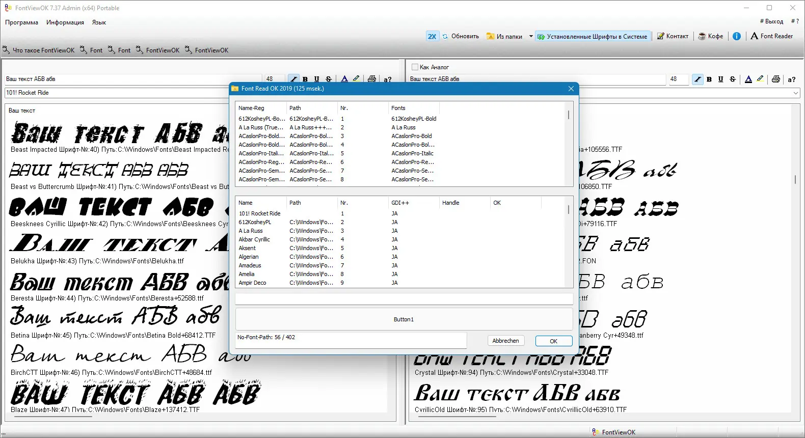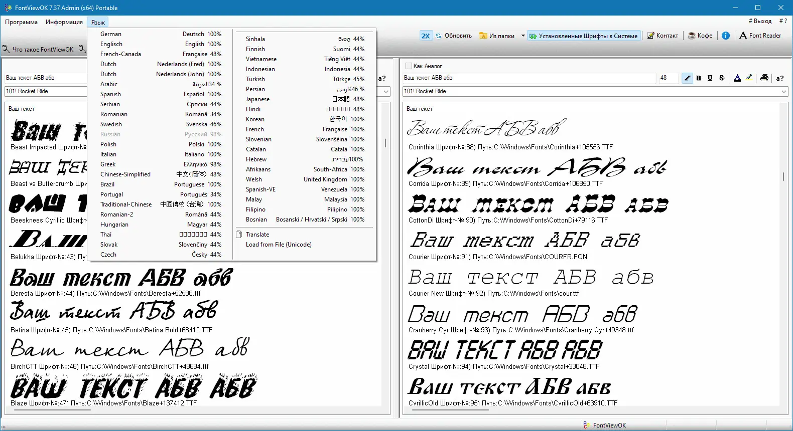 - Просмотр всех установленных шрифтов в системе