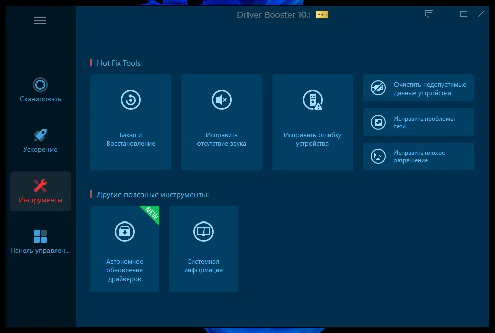 - Безопасное и быстрое обновление драйверов с автоматической проверкой и установкой