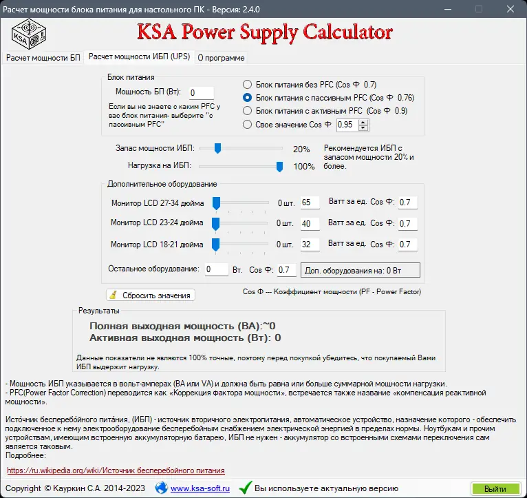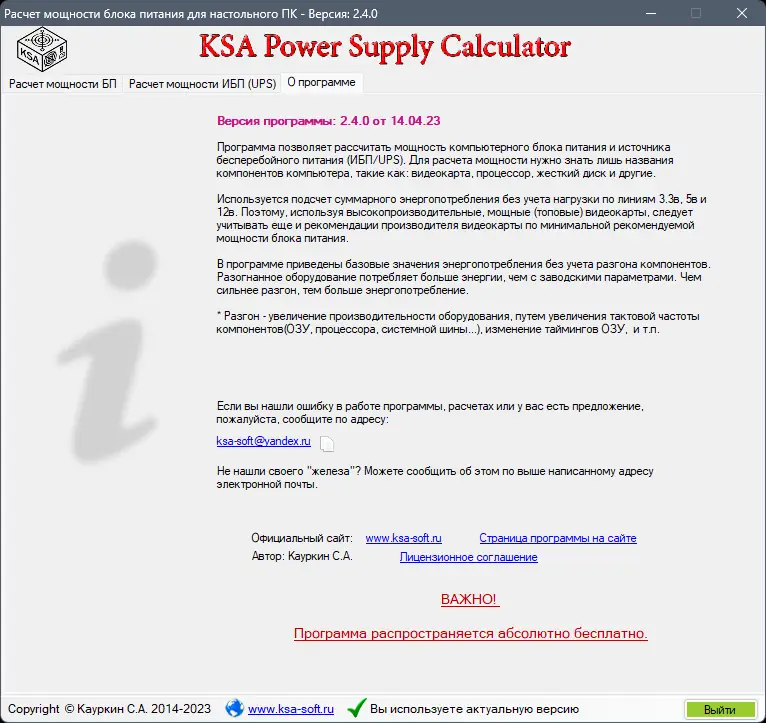 Программа для расчёта мощности блок питания и ИБП на основе компонентов компьютера.