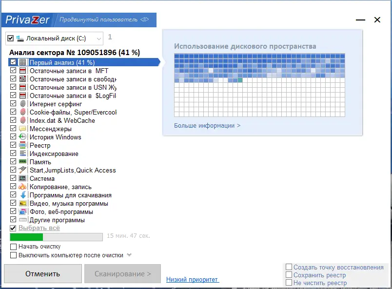 PrivaZer — это комплексное решение для очистки системы и защищенности информации. Она быстро и эффективно удаляет следы посещений сайтов, cookies, историю, файлы временного хранения и остаточные данные в реестре. Инструмент подготовит детальный отчет о проведенных операциях и предоставит возможность выбора объектов для безопасного удаления с помощью специальных алгоритмов. Благодаря удобному интерфейсу, программа легко настраивается и работает с съемными носителями, создавая резервные копии изменений для восстановления по необходимости. Версия 2022 года включает улучшенные функции очистки лог-файлов и реестра, а также поддержку High DPI для комфортной работы на современных дисплеях.