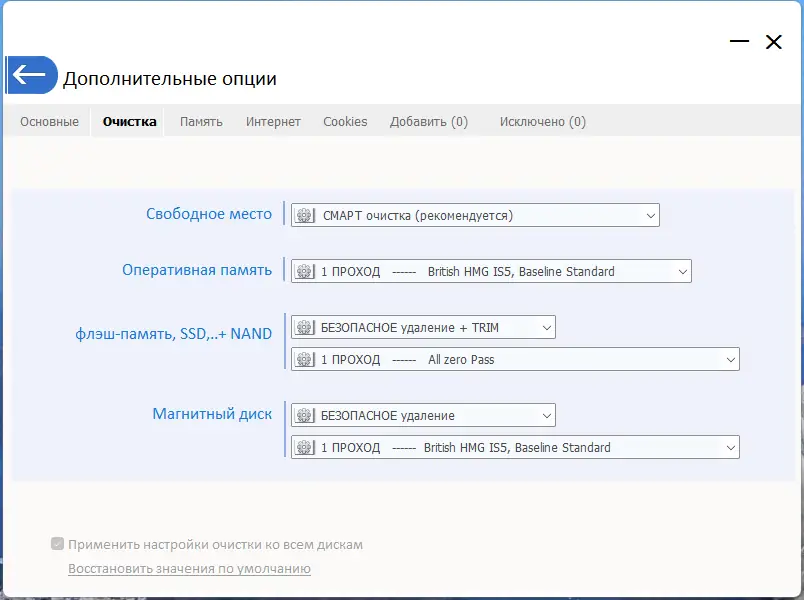 - После завершения установки настройте параметры очистки по своему предпочтению и приступайте к безопасности данных.