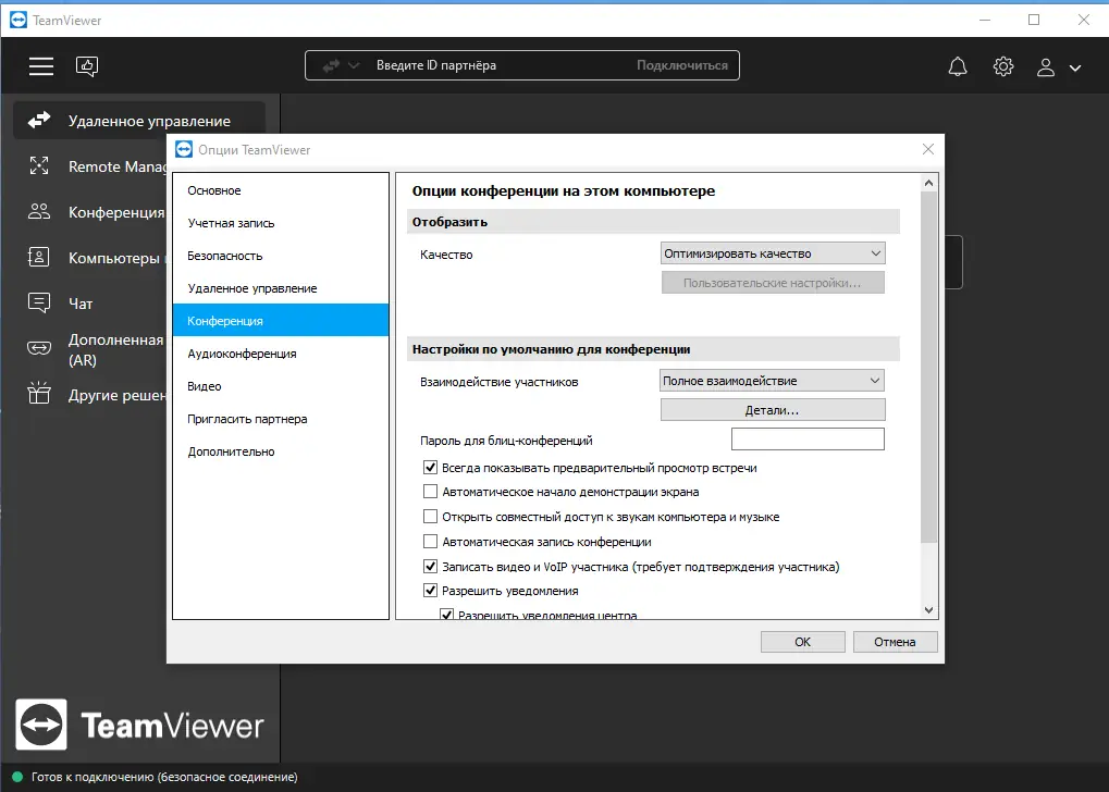 TeamViewer — универсальная программа для удалённого доступа к компьютерам и проведения совместных презентаций, передача файлов и удалённое управление без необходимости установки. Имеет встроенные функции шифрования, что обеспечивает высокий уровень безопасности работы.