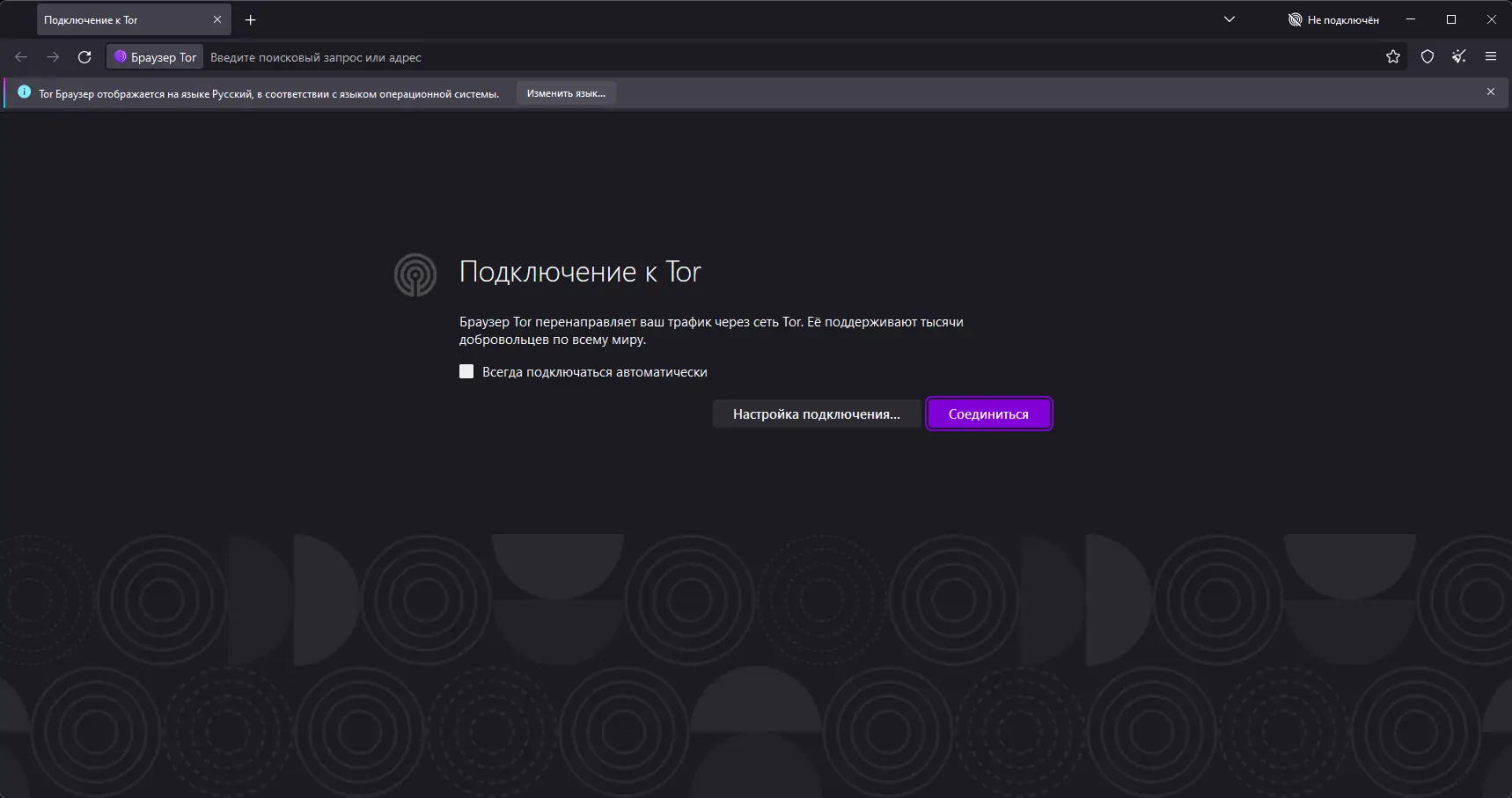 - Подождите, пока откроется браузер с активированным соединением Tor.