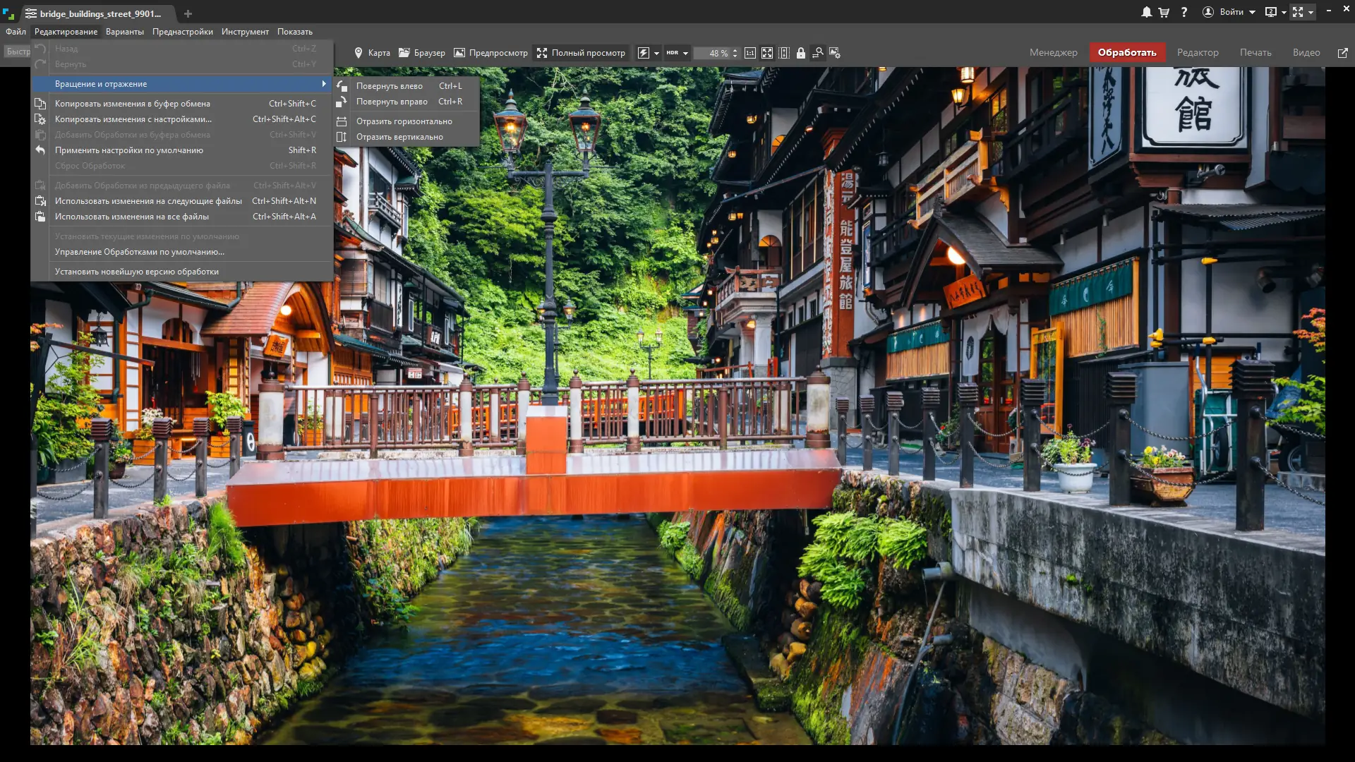 - Редактирование изображений: регулировка уровней, кривых, цветов, устранение эффектов красных глаз, редукция шума.